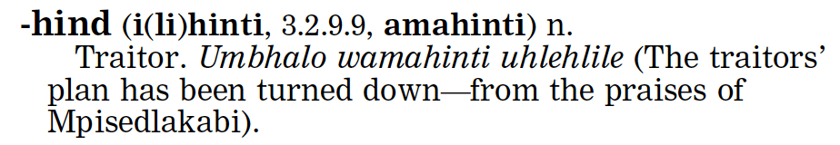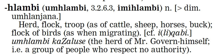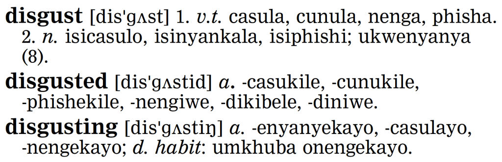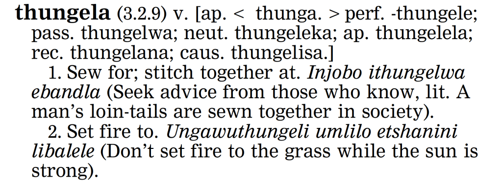 One of my many jobs at the moment is the revision of the Doke and Vilakazi Bilingual isiZulu-English Dictionary. It’s a massive task. So I amuse myself by taking screenshots of the entries that interest me. And then I’ll post them here!