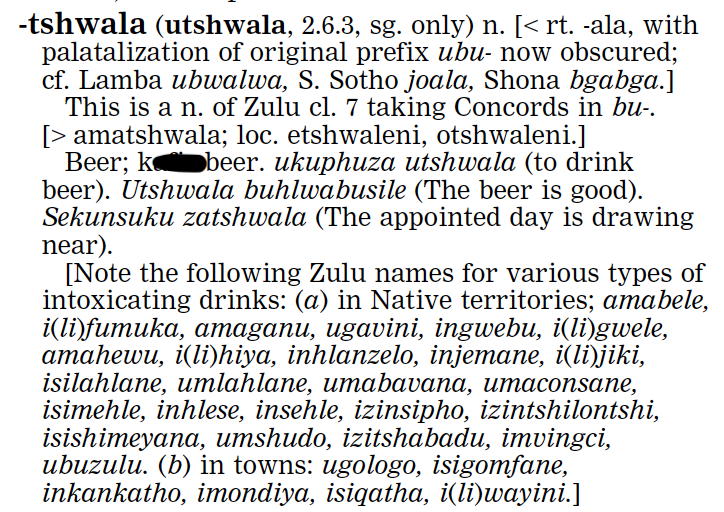 One of my many jobs at the moment is the revision of the Doke and Vilakazi Bilingual isiZulu-English Dictionary. It’s a massive task. So I amuse myself by taking screenshots of the entries that interest me. And then I’ll post them here!